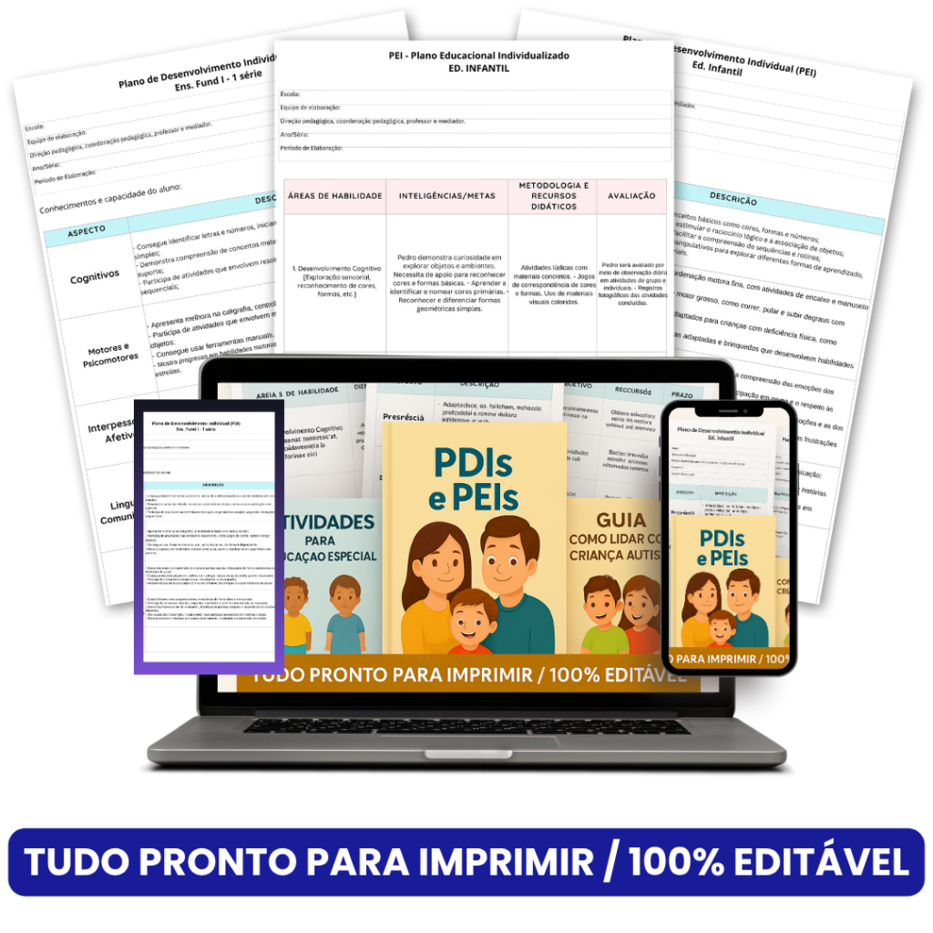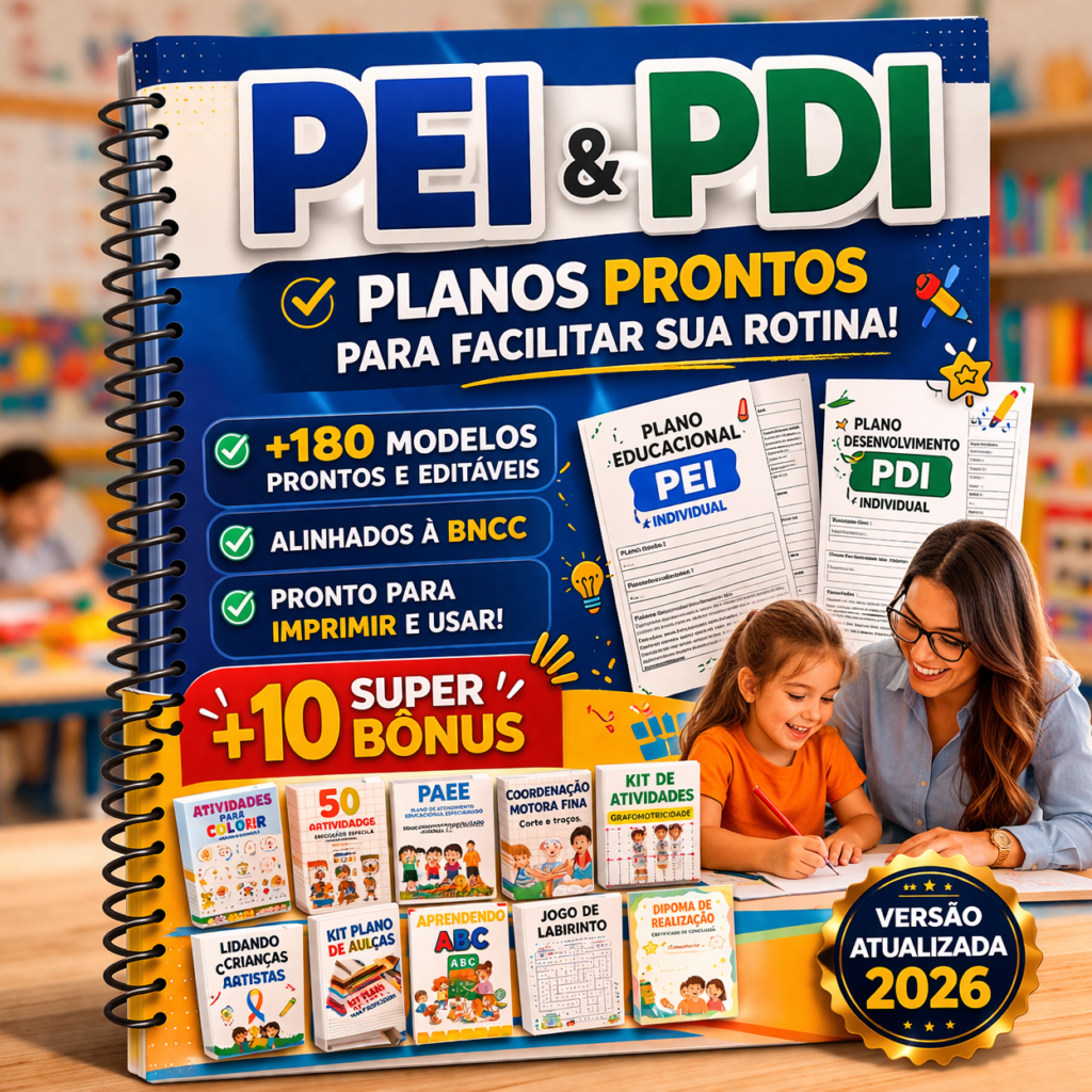 Pensando em você, professor(a), desenvolvemos um Kit completo com mais de 180 Modelos de PEIs e PDIs 📝, prontos para personalizar e atender às necessidades específicas de seus alunos.